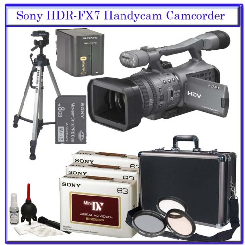 - Included: Sony HDR-FX7 3-CMOS Sensor HDV High-Definition Handycam Camcorder with 20x Optical Zoom + Vanguard Professional Series Digital Camcorder Hard Shell Case + 62mm Professional Series 3pc Filter Kit + Sony NP-F975 Lithium-Ion Battery + Sony 3× DVM-63HD Mini DV Video Cassette + Hakuba S-4500 Series Tripod + Sony 8GB Memory Stick Duo (Mark 2) Media